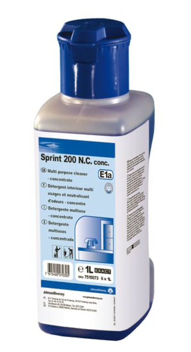 TASKI Sprint 200 Conc je vysoko koncentrovaný prostriedok na báze alkoholu na denné čistenie umývateľných povrchov.