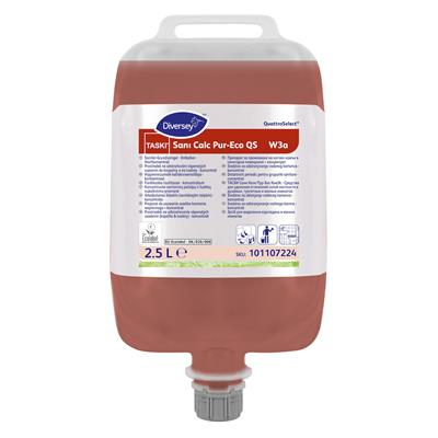 Taski Sani Calc Pur Eco QS je vysoko koncentrovaný prostriedok na odstraňovanie vápenatých usadenín z umývateľných povrchov, ktoré sú odolné voči pôsobeniu kyselín. Prostriedok sa dávkuje automaticky a vždy presne pomocou jednotky QuattroSelect a tým zaisťuje kontrolu nákladov a bezpečnosť.